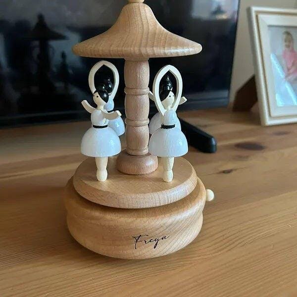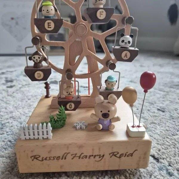 Wooden Christmas Train Castle Music Box, Personalized Engraved Keepsake Carousel Music Box