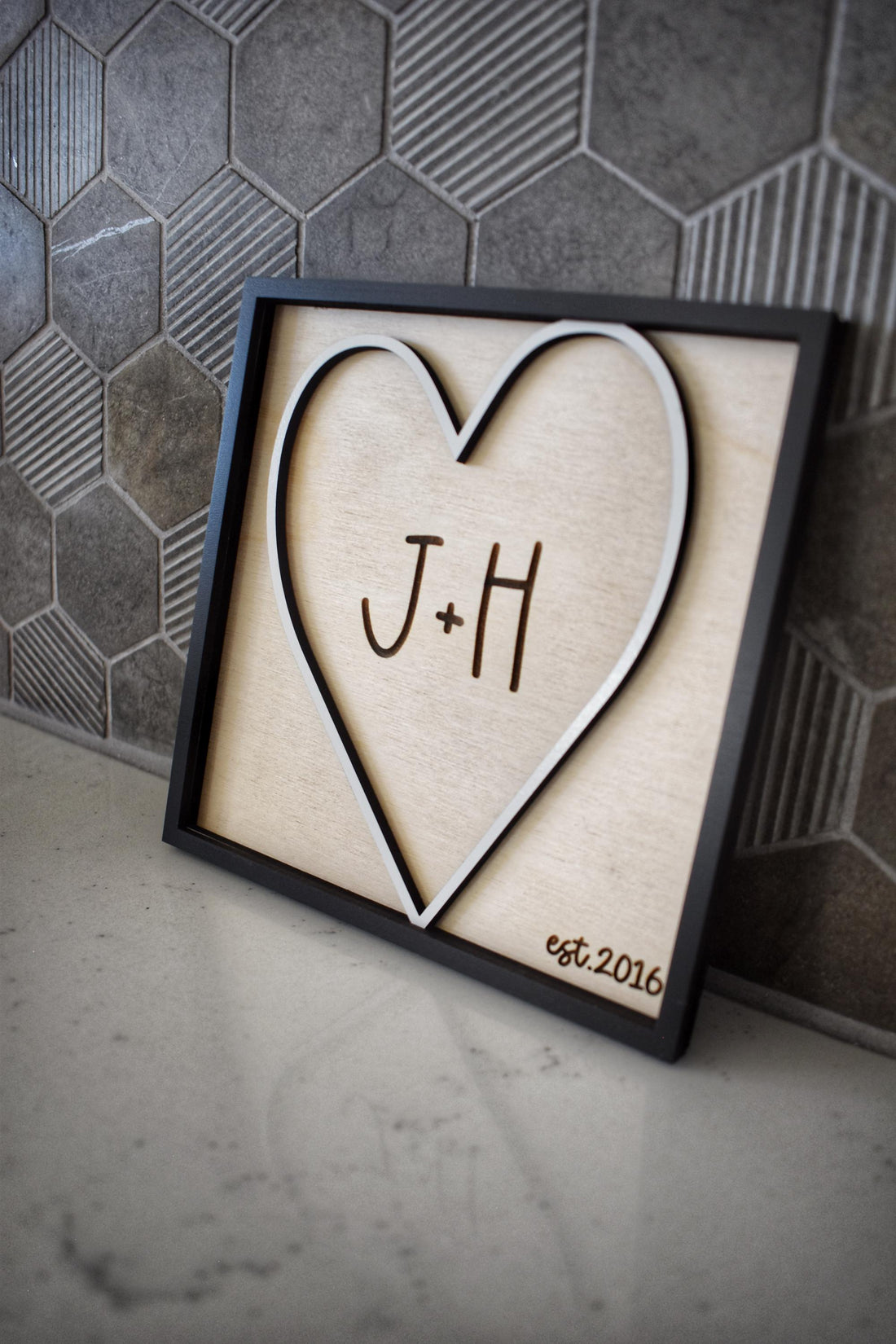 Personalized Dimensional Heart Sign – Custom Initials & Est. Year – Romantic Valentine’s Day Gift for Couples – Handmade Keepsake