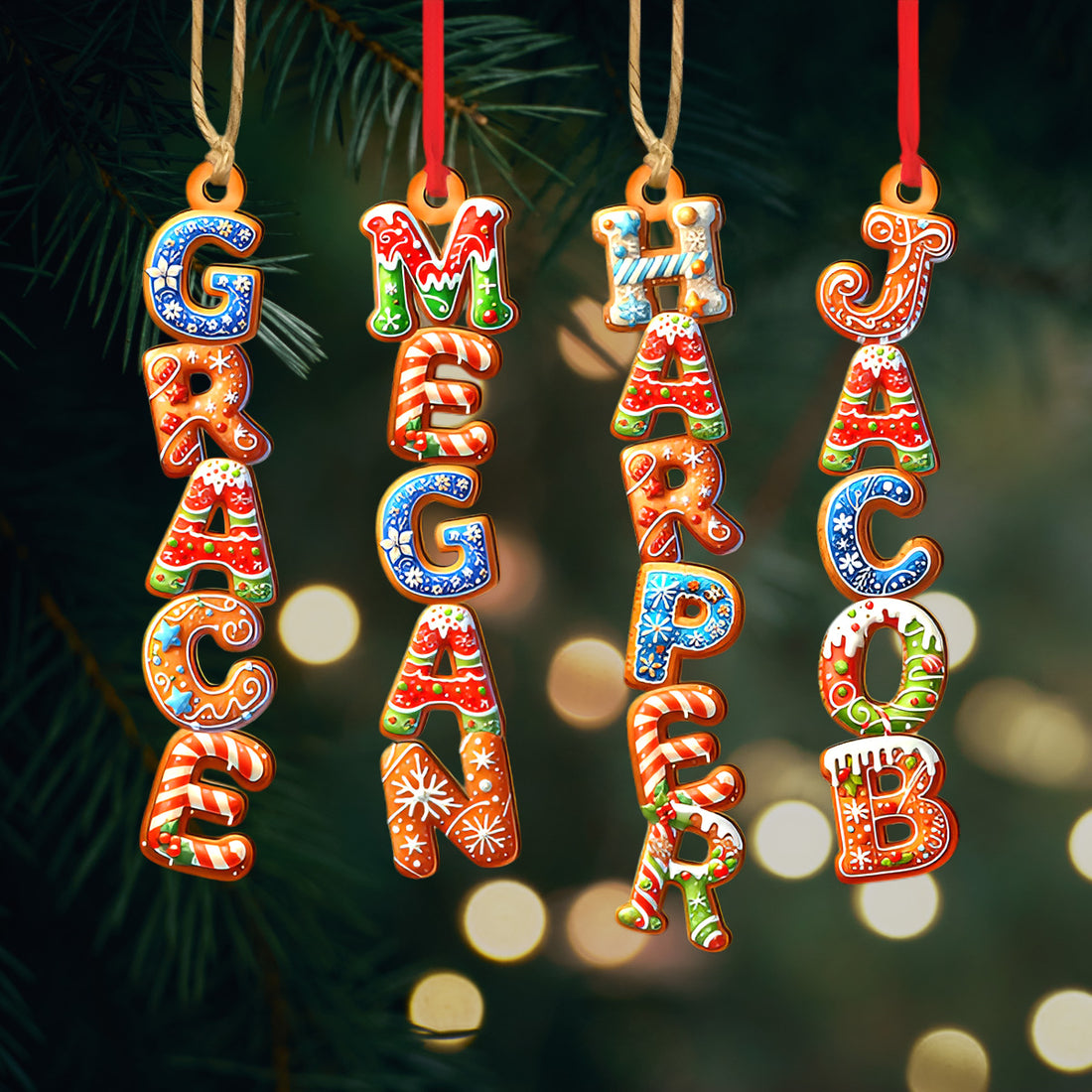 Custom Gingerbread Letter Acrylic Ornament: Custom Kids Name Ornament, Christmas Stocking Name Tag for Family, Cousin Christmas 2025