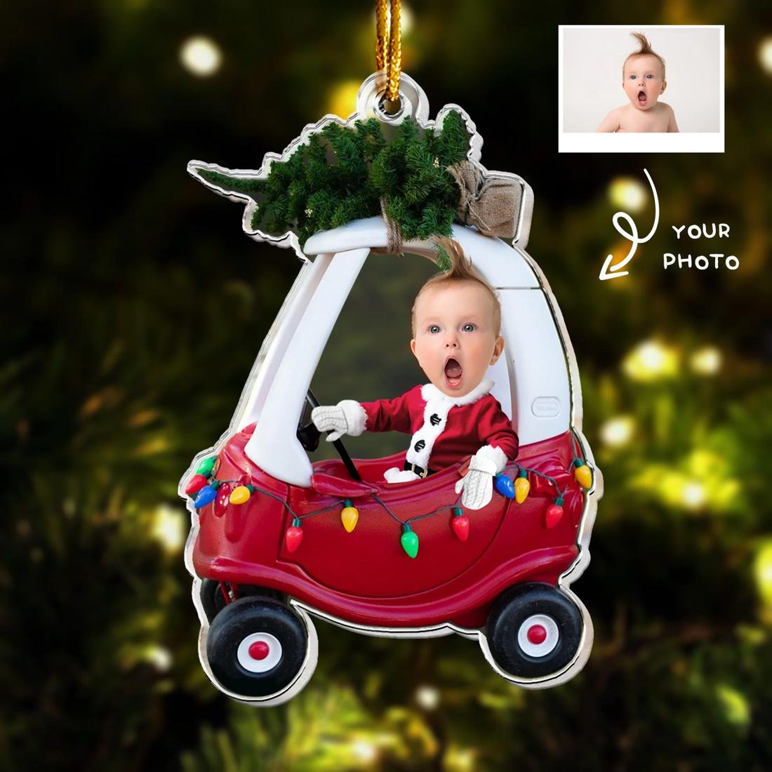 Custom Baby Kid In Car - Personalized Newborn Christmas Photo Ornament