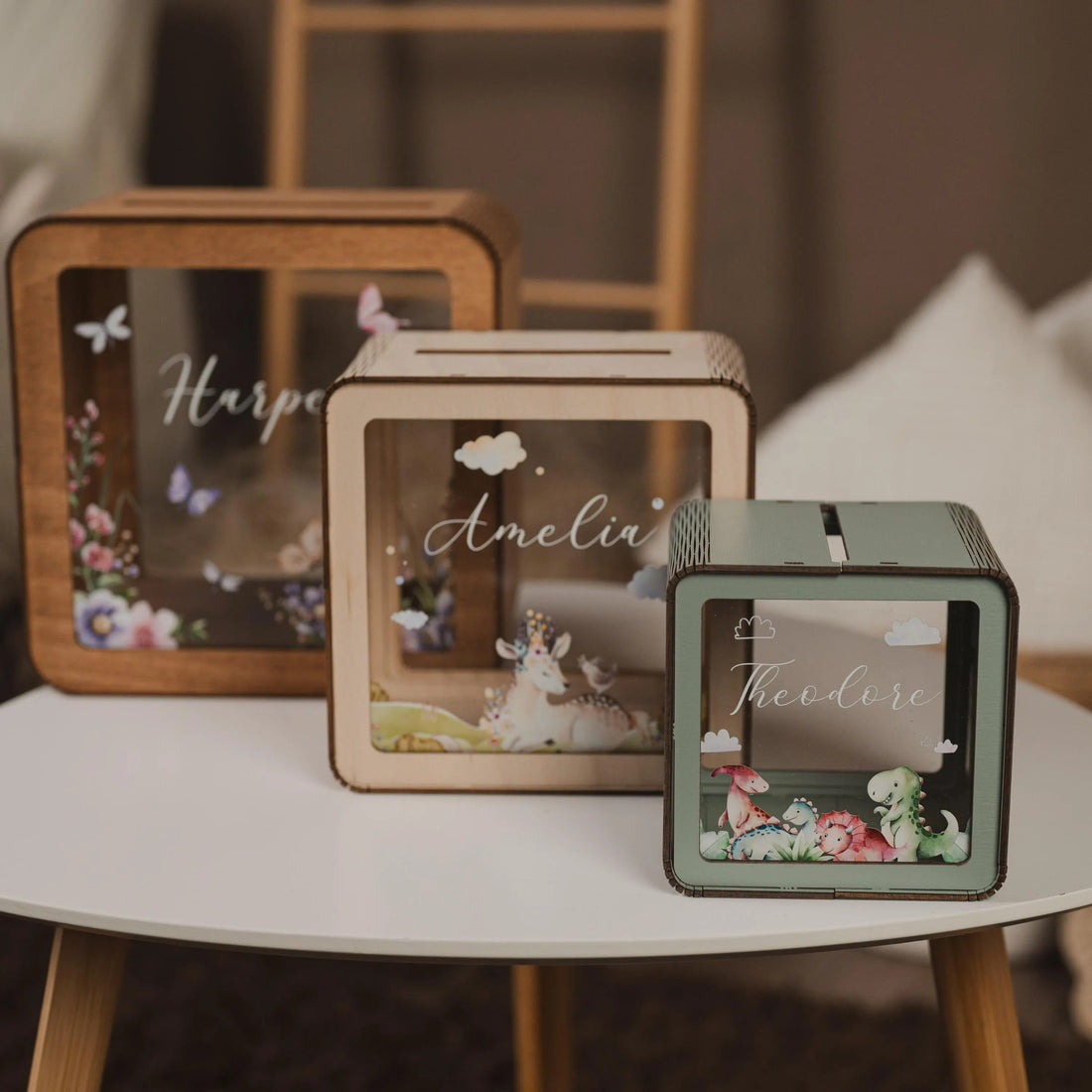 Personalized Wooden Piggy Bank: Montessori Savings Box for Kids