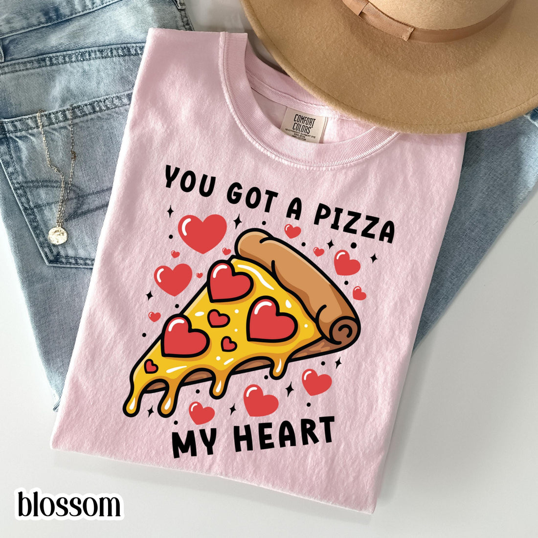 Valentines Day Comfort Colors Shirt Pizza My Heart T-Shirt Funny Vday Food Lover Tee Pizza Heart Love Tshirt For Girlfriend Boyfriend