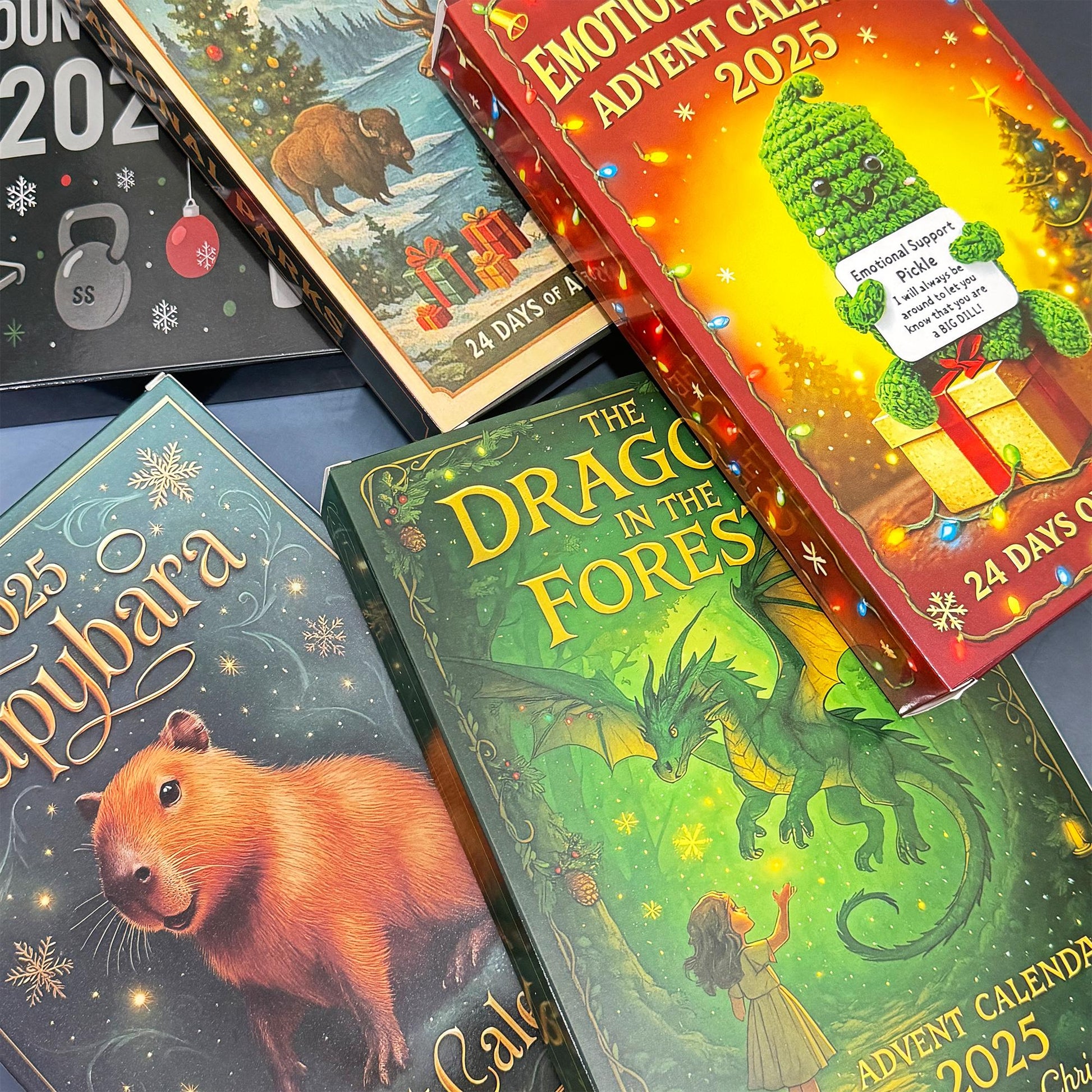 2025 Emotional Support Advent Calendar: 24Pcs Funny Acrylic Ornaments,Vegetable,Fruits,Capibara,The Dragon & Forest,Christmas Countdown Gift