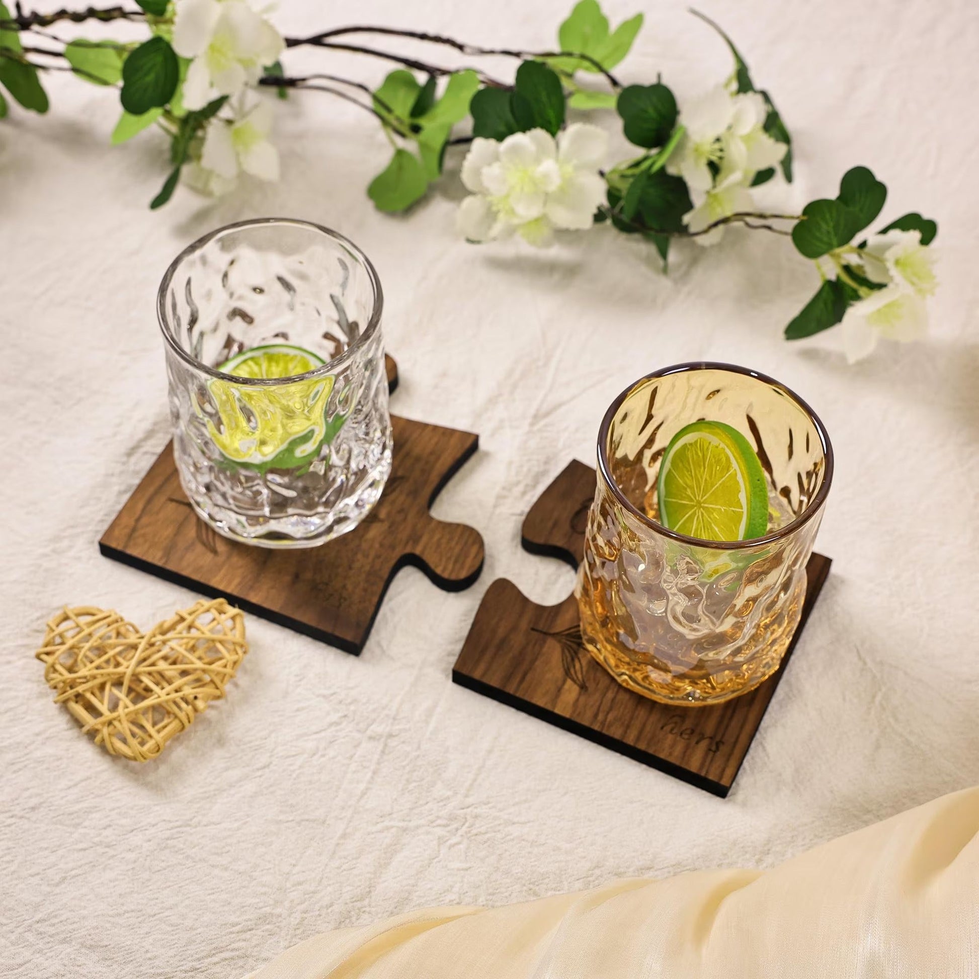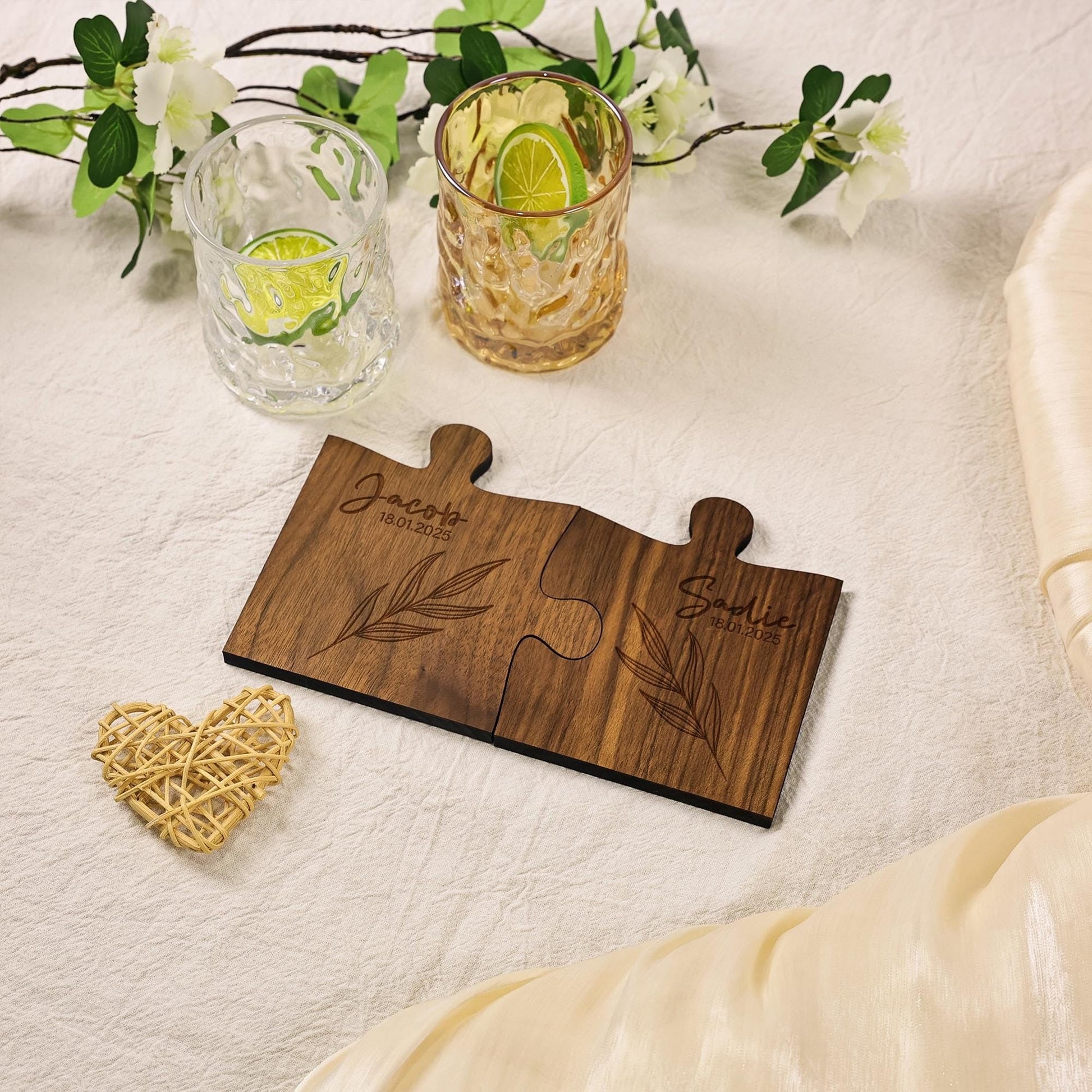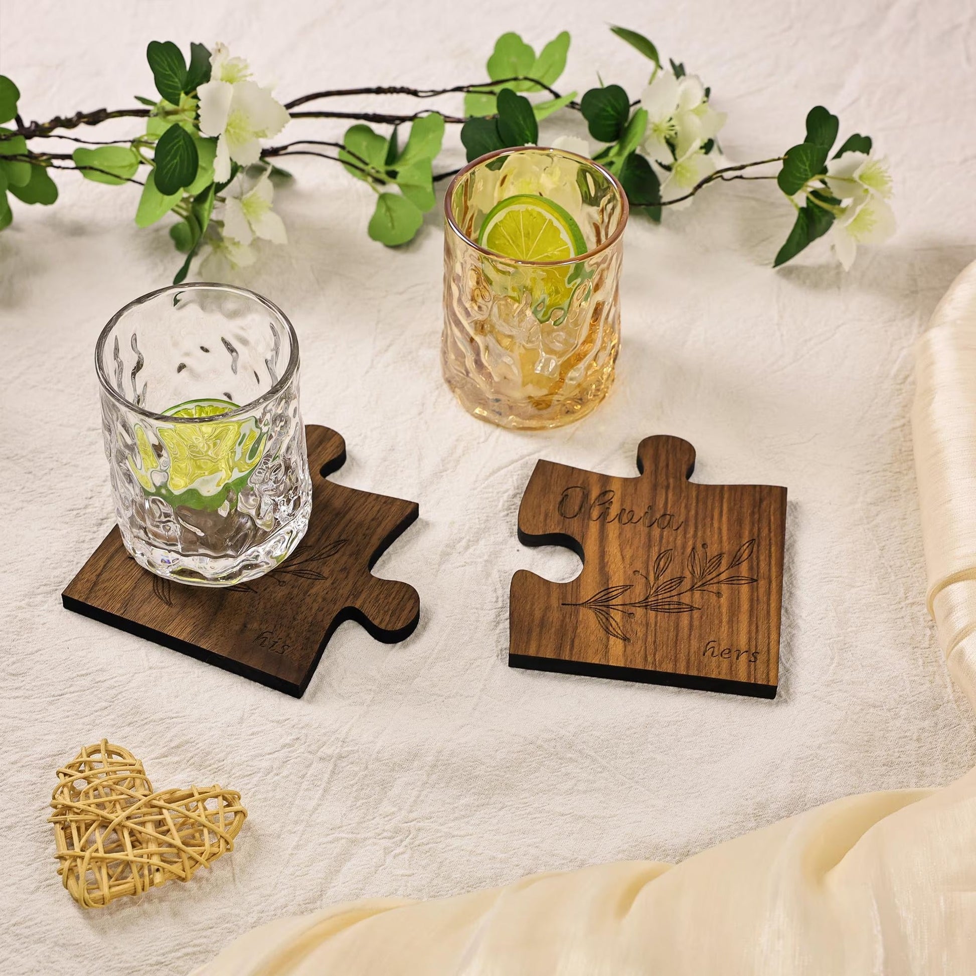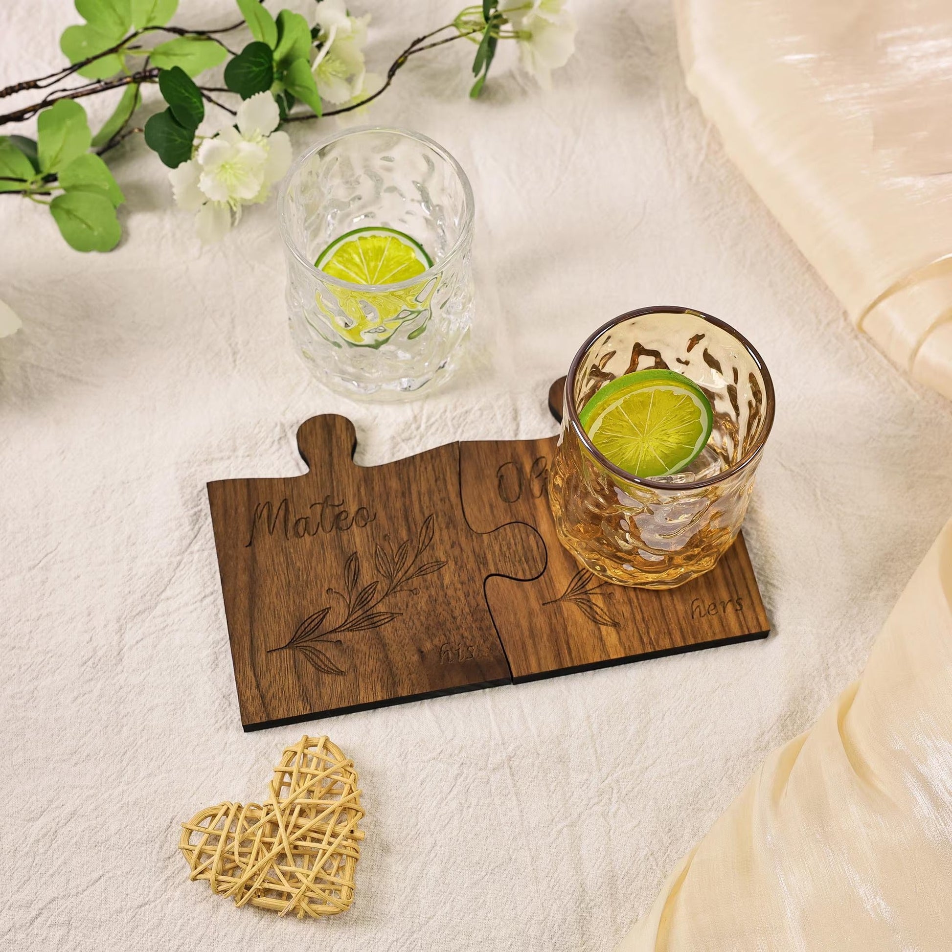 Custom Couples Coaster Set, Leaf Design, Personalised Couples Coaster, Set of 2, His Her Coasters, Anniversary Wedding Gift, Mr Mrs Gift