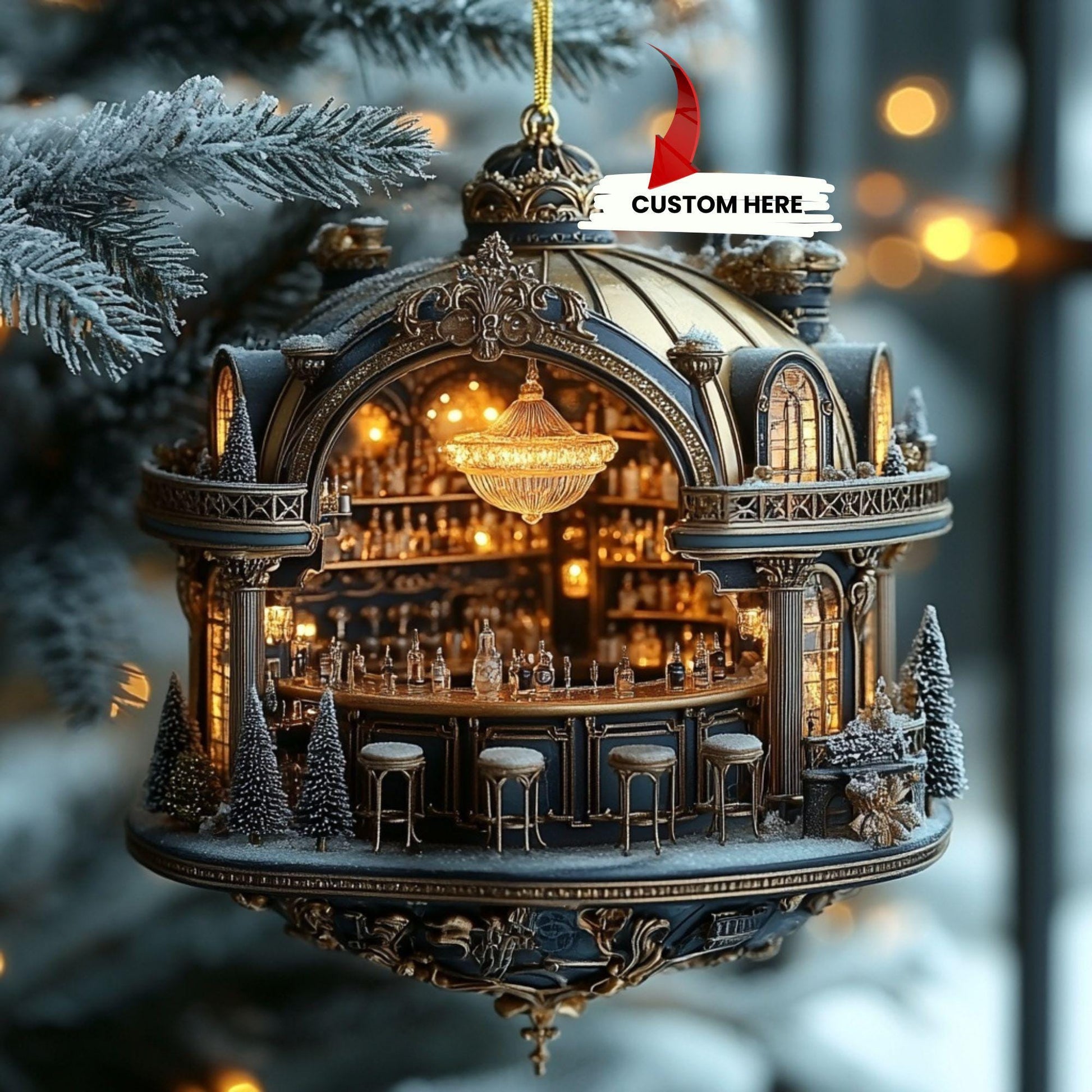 Custom Luxury Miniature Bar Ornament, Whiskey Bottle Christmas Tree Decoration For Men