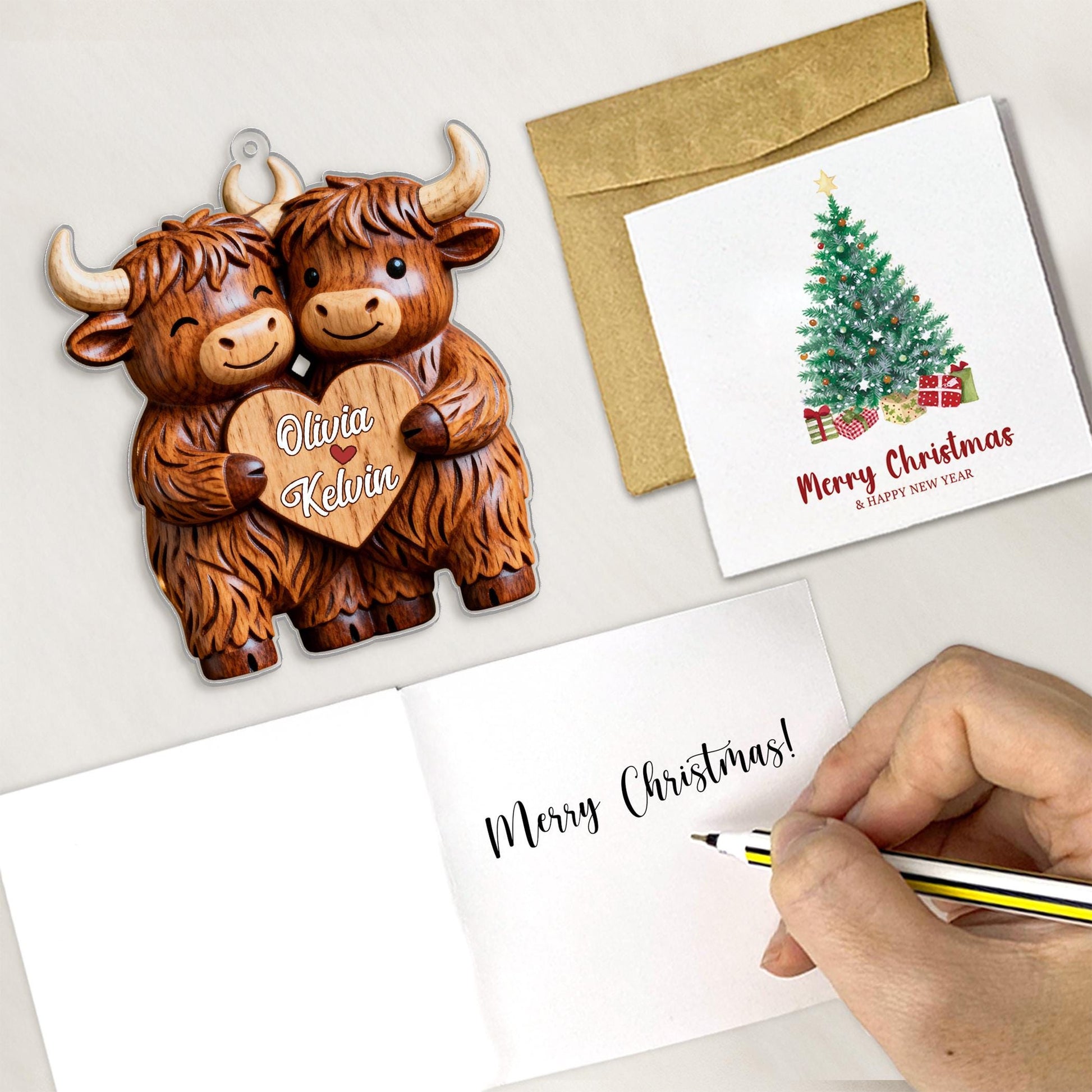 Highland Cowl Couple Acrylic Ornament,Personalized Name Christmas Gift For Couples,Keepsake Christmas 2025,Gift For Her,For Boy,Couple Gift