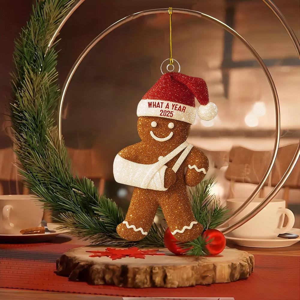 Injury Christmas 3D Glitter FLAT Ornament, Funny Gingerbread Xmas Ornament, Broken Arm Holiday Decor, What a Year 2025 Ornament Gift