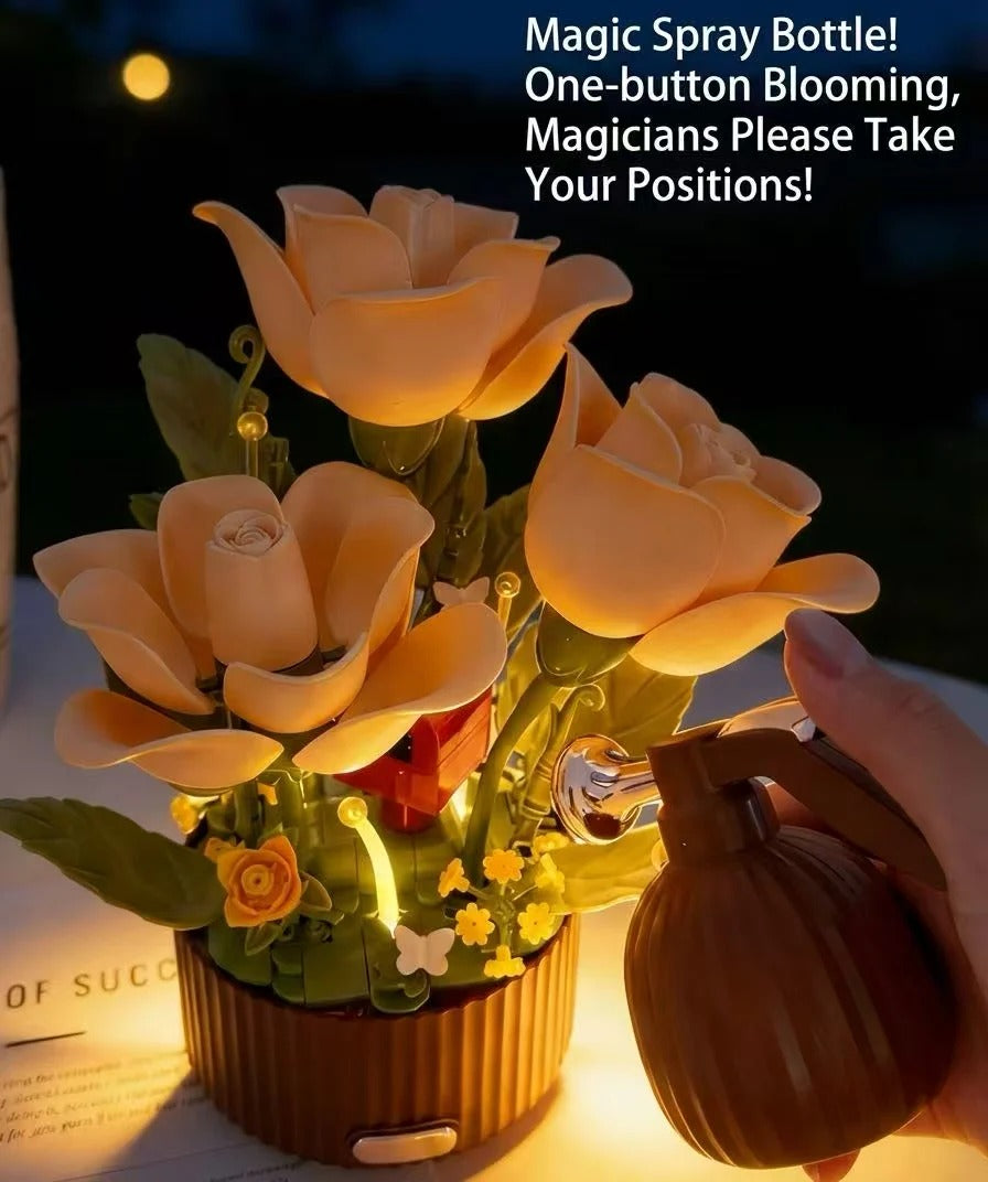 Magic Blooming Flower Building Blocks with Motion Rose Bouquet