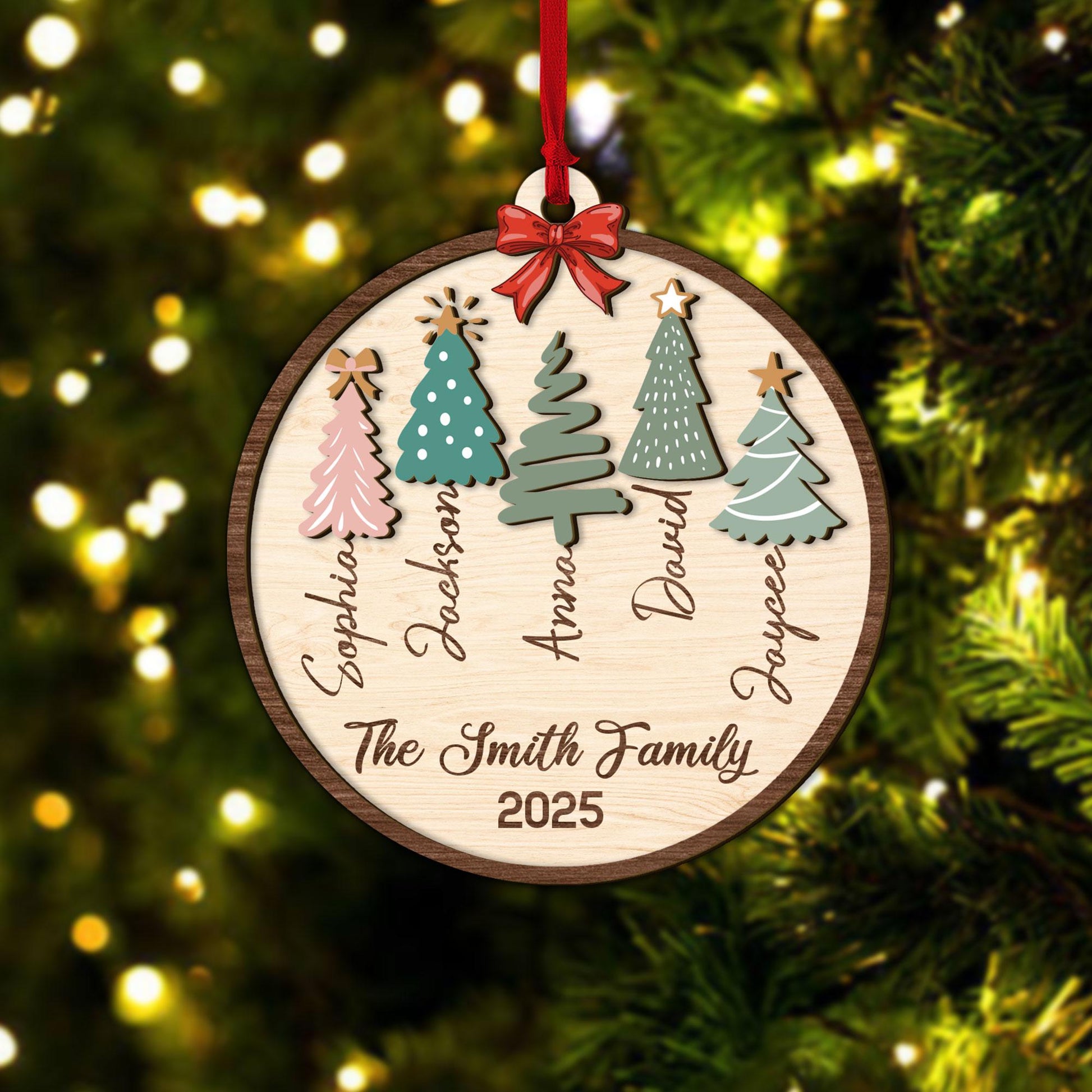 Personalized Family Layered Wood Ornament, Custom Family Name Christmas Ornament, Christmas Tree Decoration, Christmas Ornament Gift