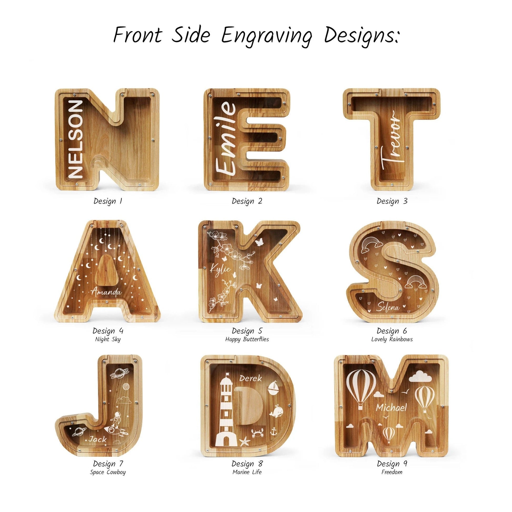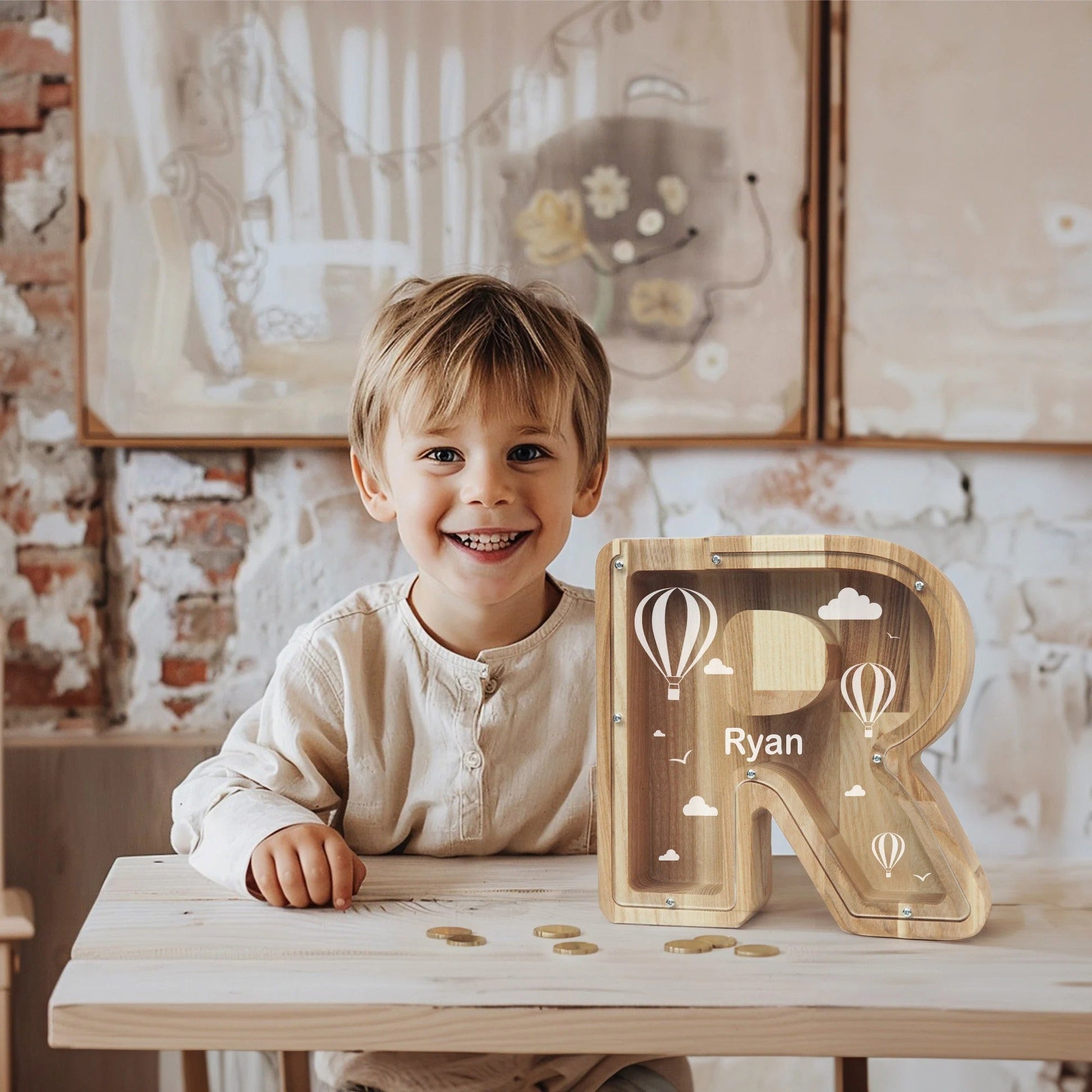 Personalized Letter Piggy Bank For Kids, Custom Money Box for Birthday Gift, Name Engraved Coin Jar, Cute Wooden Savings Holder For Toddler