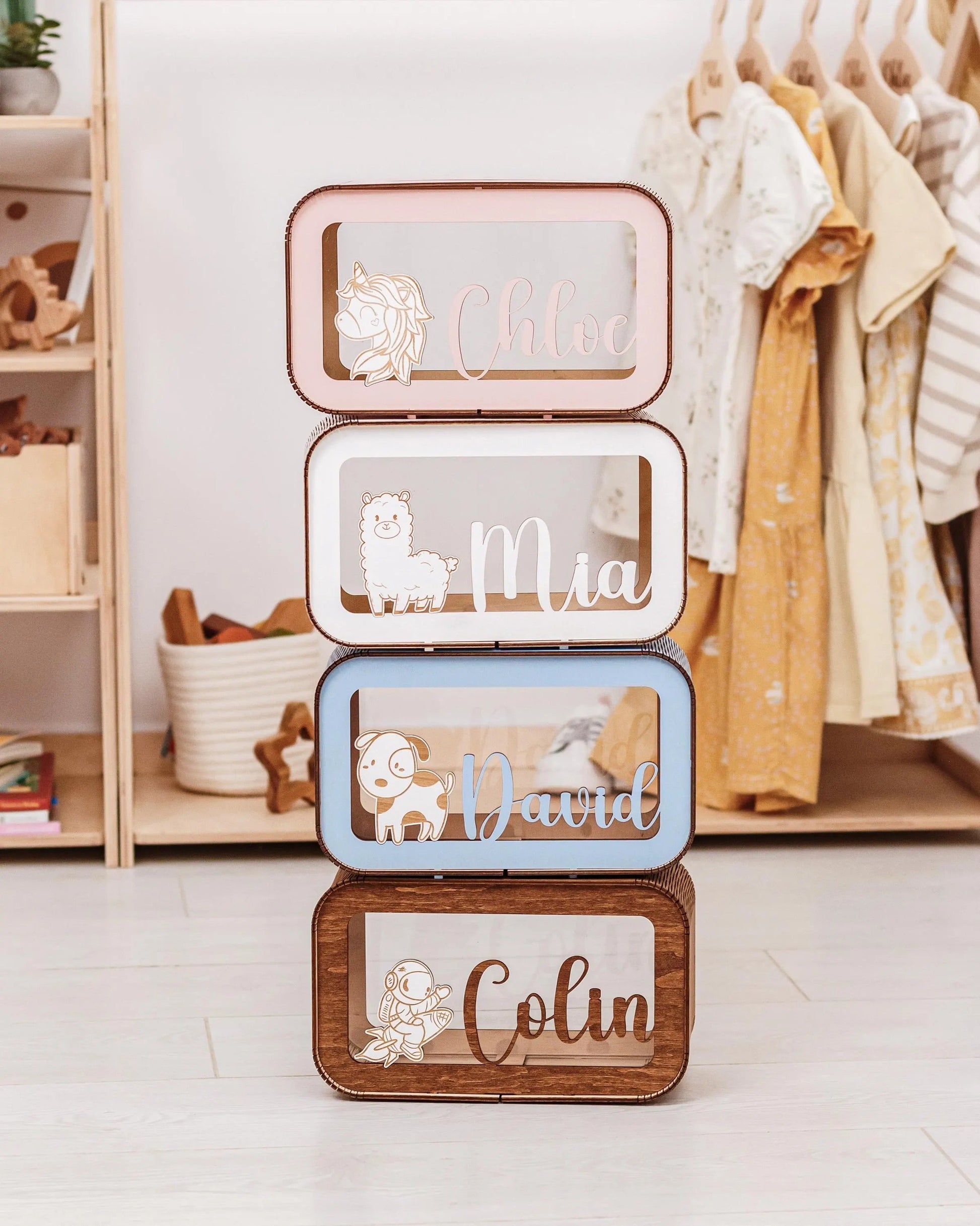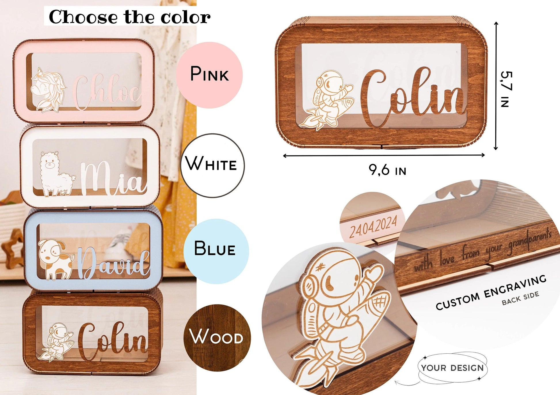Personalized Piggy Bank for Girl, Kids Money Box with Name, Baby Girl Gift, Saving Cute Box, Wooden Piggy Bank For Child