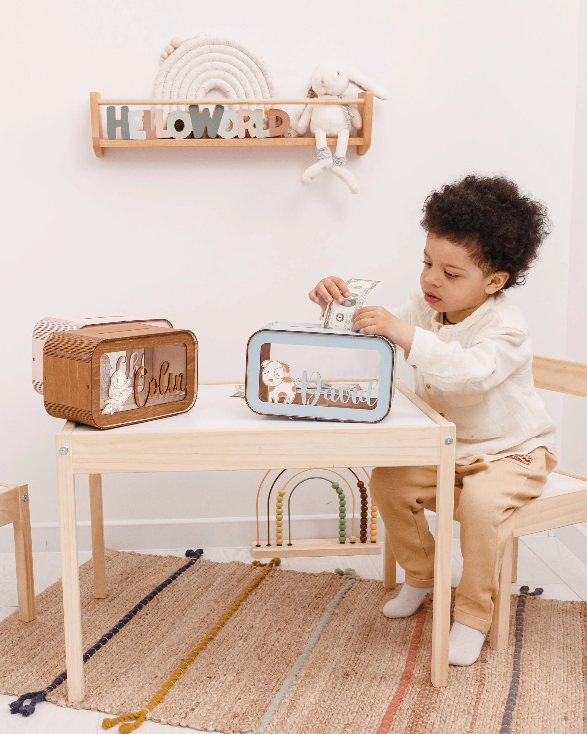 Personalized Piggy Bank, Wooden Kids Money Box with Name, Baby Nephew Gift. Birthday Gifts for Kids, Boy Nursery Decor, Toddler Gifts