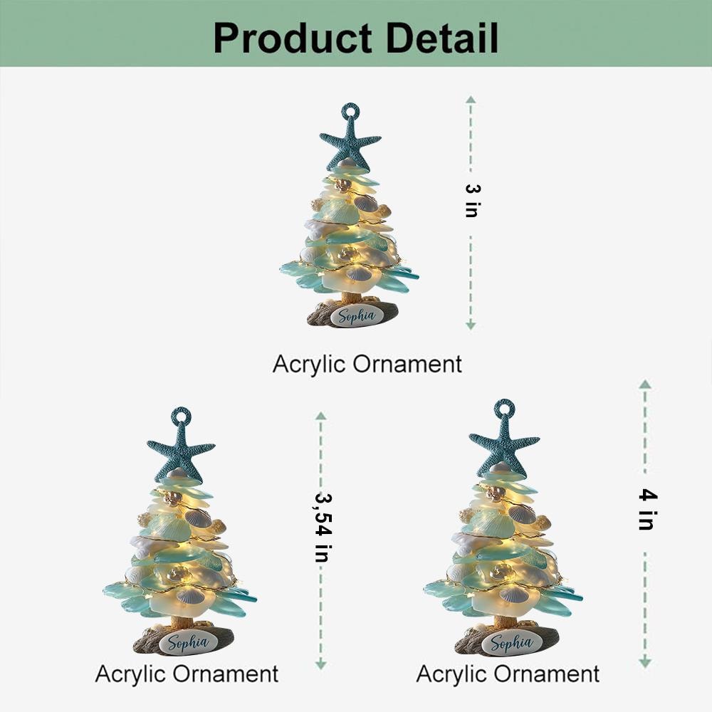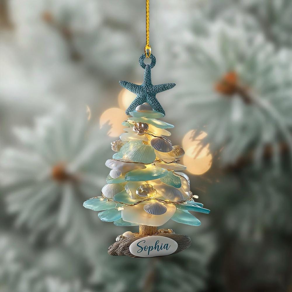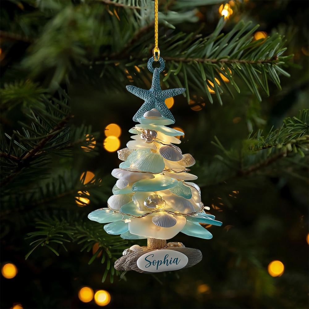 Personalized Sea Glass 2D Flat Christmas Tree Ornament, Coastal Ornament, Beach Christmas, Ocean Lover Gift, Holiday Gift For Beach Lovers