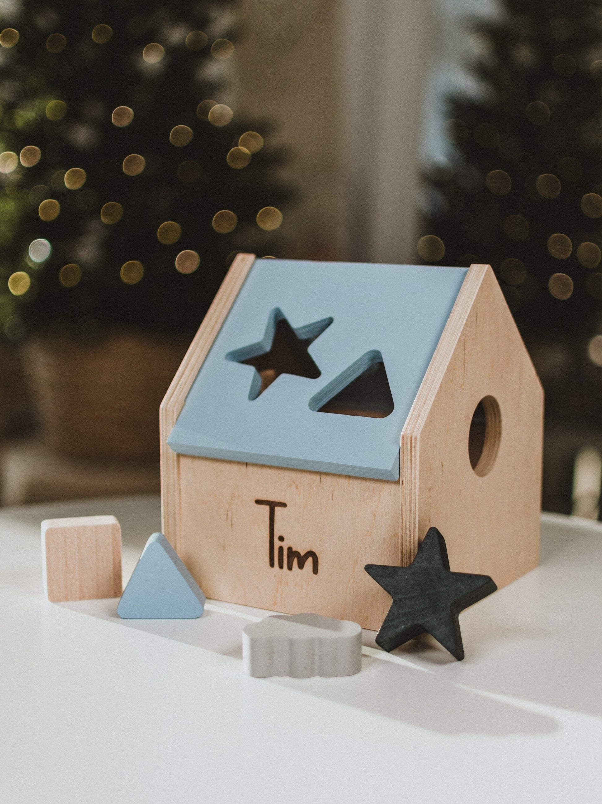 Personalized Wooden Shape Sorter Developmental Toy For Baby Shower Cute Gift Newborn Puzzle Box For Toddler Custom 1st Birthday Present