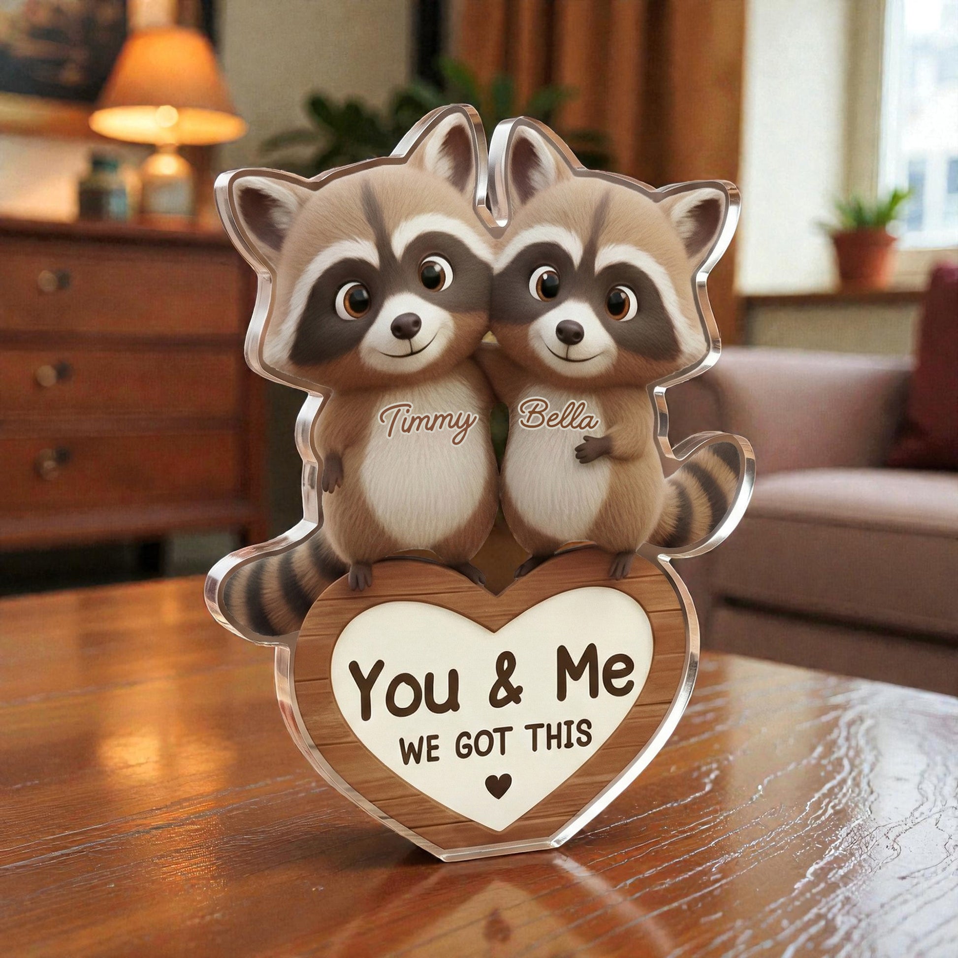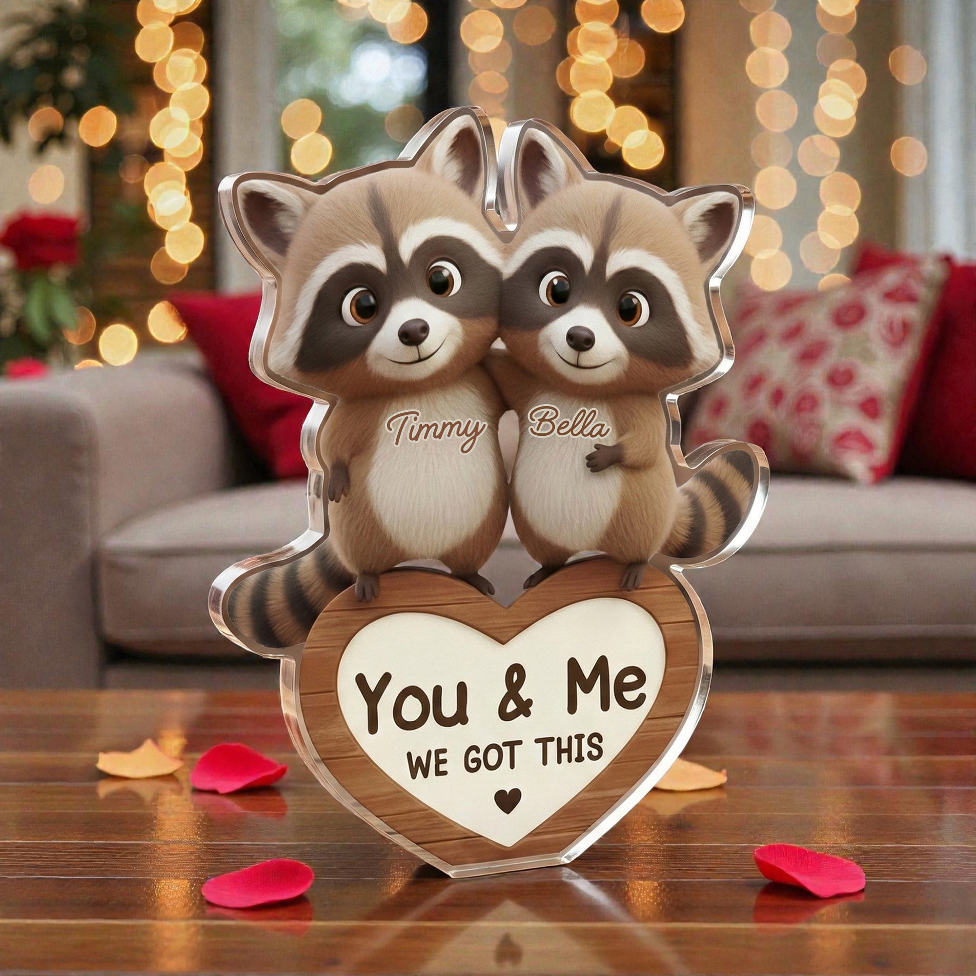 Racoon Couple - We got this 2 - Personalized Acrylic Block Plaque