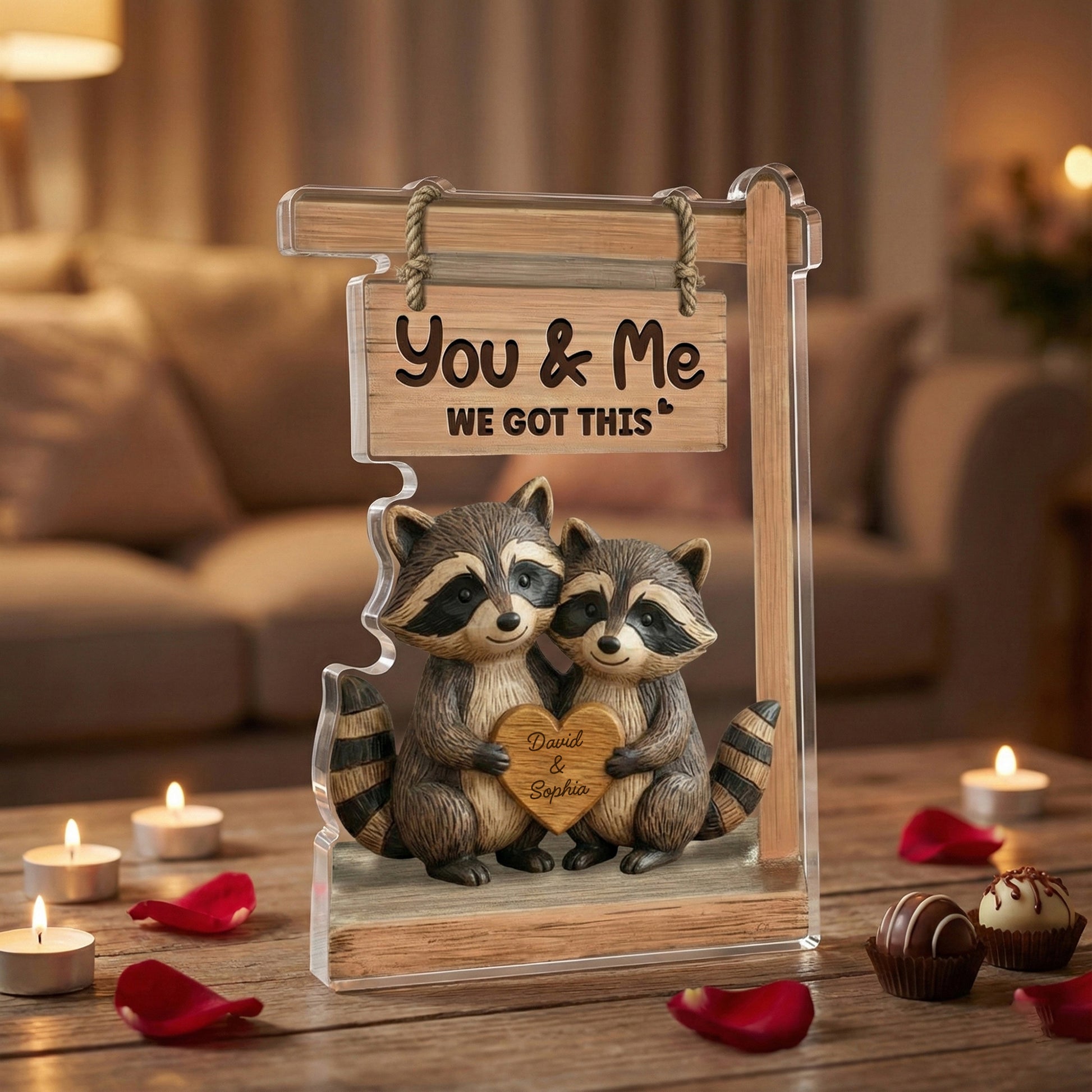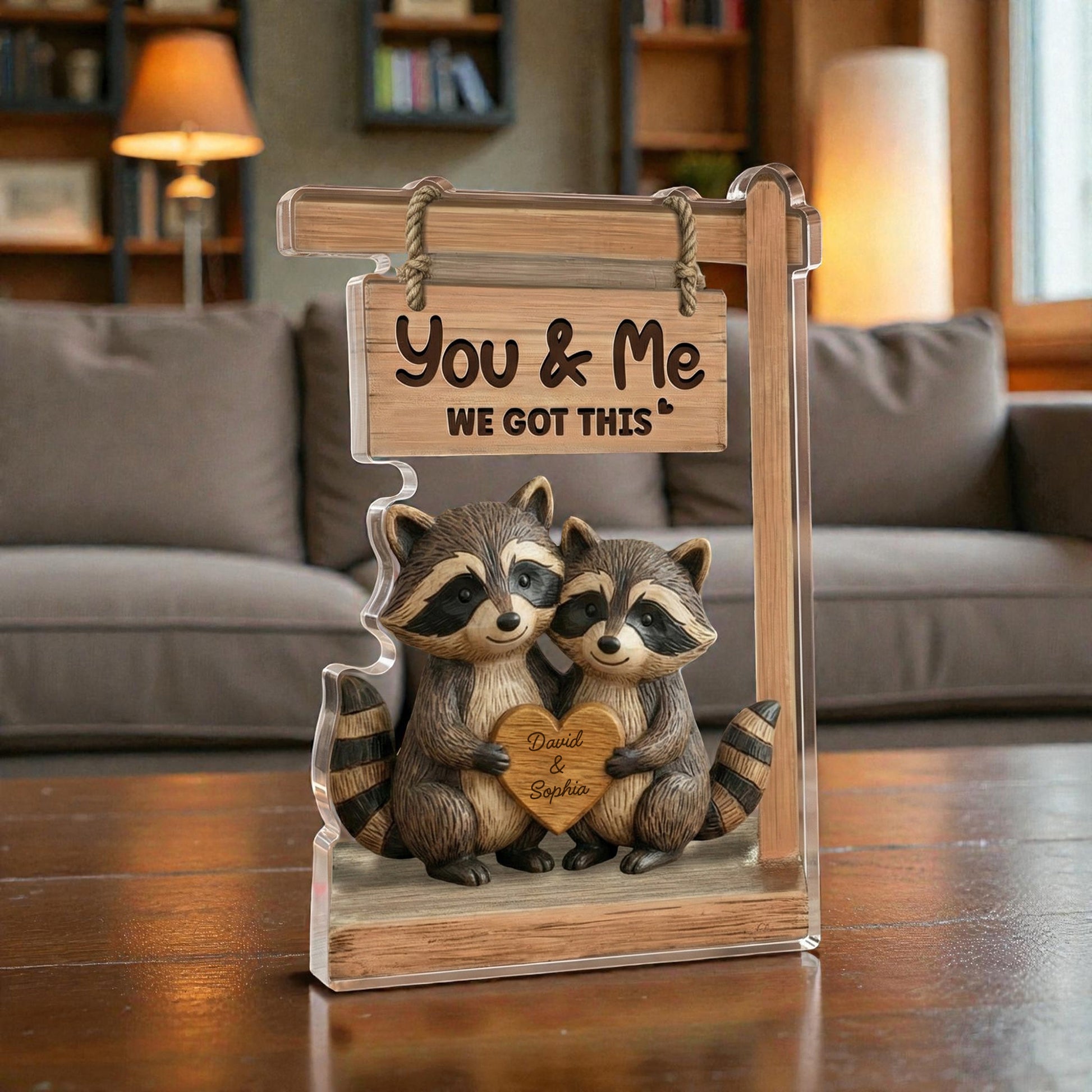 Racoon Couple - We got this - Personalized Acrylic Block Plaque