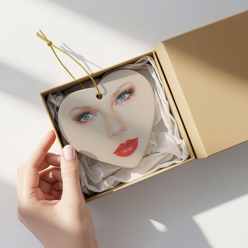 Taylor Christmas Face Cute Ornament, Funny Swift Fans Custom Gift Christmas Tree Decor, Xmas Keepsake Personalized Music Ceramic Ornament
